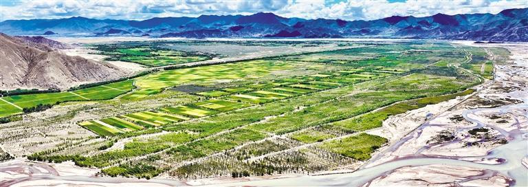 8月23日,日喀則市南木林縣“雅江北岸生態(tài)示范區(qū)”3.6萬畝生態(tài)防護(hù)林郁郁蔥蔥。經(jīng)濟(jì)日?qǐng)?bào)記者 袁勇 攝