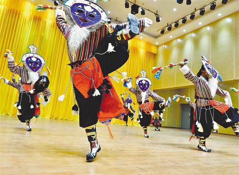 9月13日,日喀則市昂仁縣民間藝術(shù)團(tuán)演員在淄博援建的迥巴藏戲國(guó)家級(jí)非物質(zhì)文化遺產(chǎn)保護(hù)中心演出。經(jīng)濟(jì)日?qǐng)?bào)記者 袁勇 攝