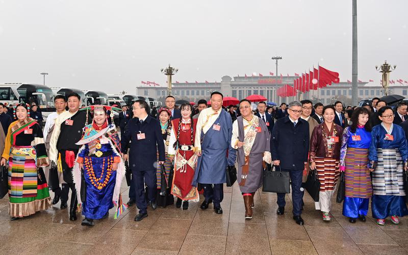 3月5日上午,十四屆全國(guó)人大二次會(huì)議在北京人民大會(huì)堂開幕。來(lái)自西藏自治區(qū)的全國(guó)人大代表們滿懷信心步入人民大會(huì)堂。記者 旦增西旦 攝