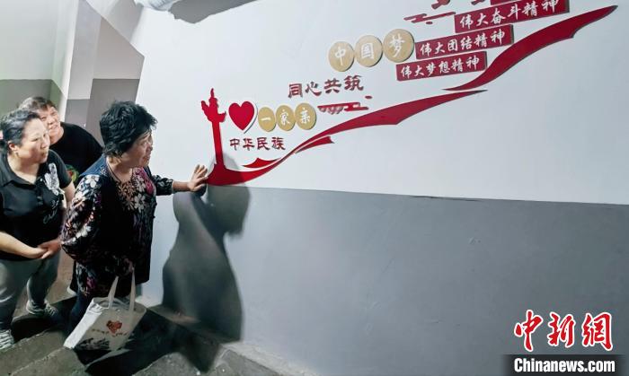 “樓里的每一處設(shè)計(jì),都凝聚著各族居民的智慧?!睆埞葐谈锌?,從樓牌標(biāo)語(yǔ)到過(guò)道裝飾,居民們?nèi)虆⑴c設(shè)計(jì),樓道里的每句標(biāo)語(yǔ)都表達(dá)著他們心聲。