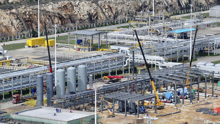 這是2024年6月21日拍攝的位于珠海經(jīng)濟開發(fā)區(qū)的中海石油深海開發(fā)有限公司二氧化碳回收利用項目塔器安裝現(xiàn)場。新華社發(fā)(邱婷 攝)