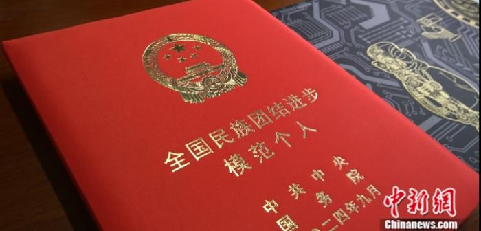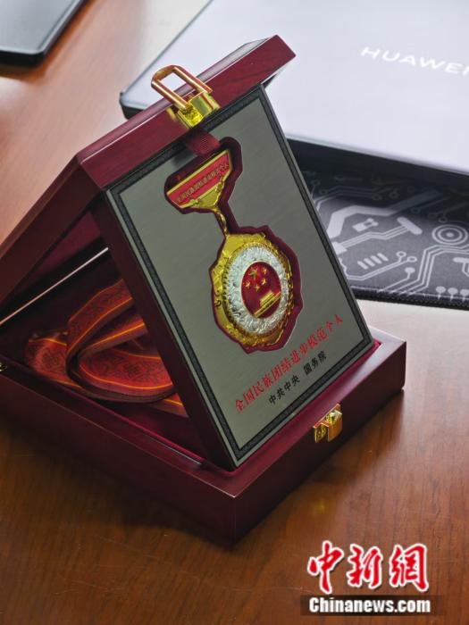 圖為孫樹學(xué)榮獲的全國民族團結(jié)進步模范個人獎?wù)?中新網(wǎng) 薛凌橋 攝