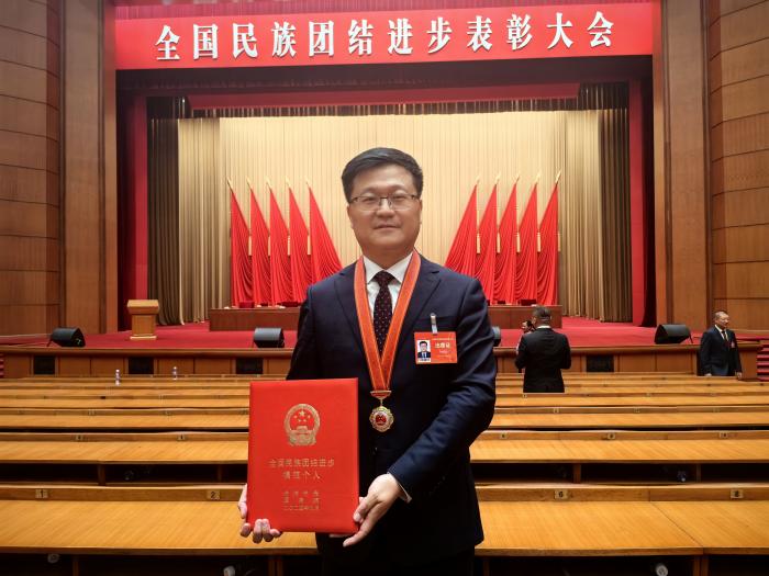 圖為孫樹學(xué)出席全國民族團結(jié)進步表彰大會。受訪者供圖