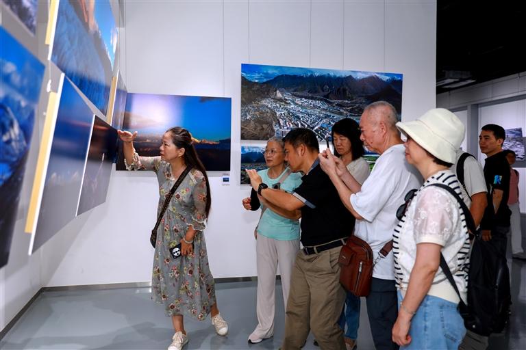 廣東省中山市市民觀看“粵藏同心 山海同行”廣東中山市·西藏林芝市工布江達縣攝影作品展。
