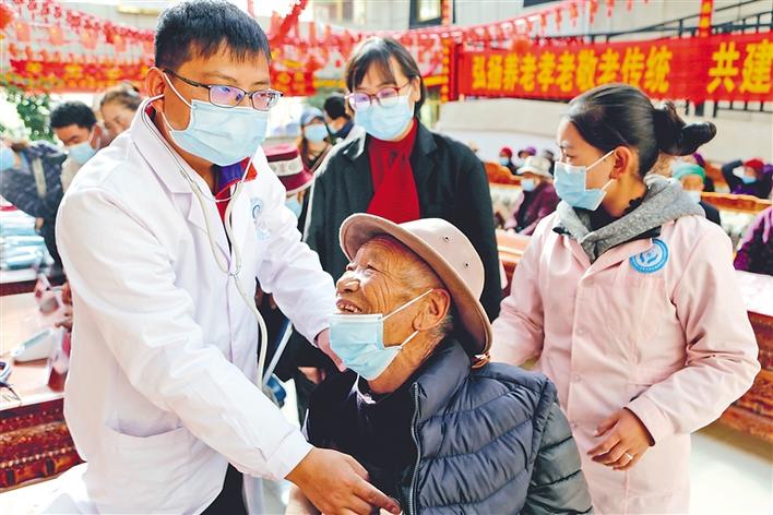 每年的10月是山南市瓊結(jié)縣的“敬老月”,2020年10月30日,縣衛(wèi)生系統(tǒng)黨總支組織縣人民醫(yī)院、藏醫(yī)院、疾控中心、醫(yī)保局等醫(yī)務(wù)工作者,在縣特困人員集中供養(yǎng)中心開展了以“弘揚(yáng)養(yǎng)老孝老敬老傳統(tǒng)、共建共享老年友好社會(huì)”為主題的健康服務(wù)活動(dòng)。讓老人們切切實(shí)實(shí)感受到黨和政府的關(guān)懷和溫暖,感受到全社會(huì)的關(guān)愛(ài)和重視。 圖為縣人民醫(yī)院援藏醫(yī)生正在為老人檢查身體(2020年10月30日攝)。