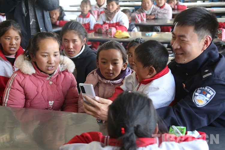 12月15日,在西藏自治區(qū)拉薩市空港新區(qū)甲日小學(xué)內(nèi),拉薩出入境邊防檢查站(以下簡(jiǎn)稱:拉薩邊檢站)的民警和同學(xué)們一起撥通了東莞出入境邊防檢查站(以下簡(jiǎn)稱:東莞邊檢站)的視頻電話,孩子們看到屏幕中相隔萬(wàn)里的廣東東莞的叔叔阿姨們,迫不及待展示最近的學(xué)習(xí)成果。