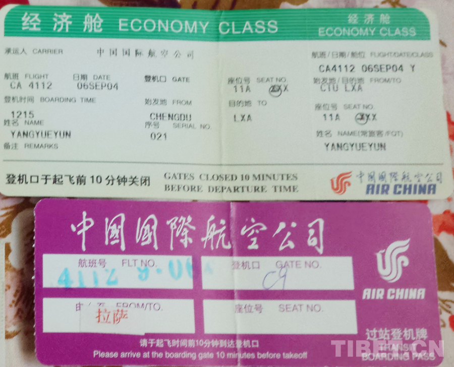圖為2004年9月6日,作者第一次去西藏搭乘航班時的過站登機牌