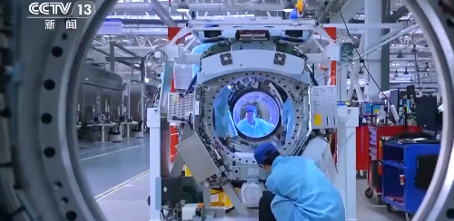 技術(shù)人員正在對航天器艙體進(jìn)行細(xì)致的調(diào)試工作 圖片來源:央視新聞