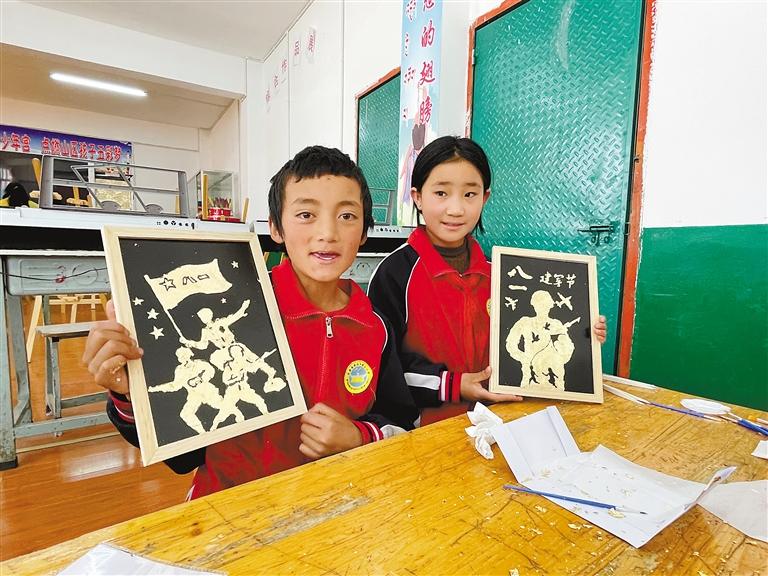 圖為八一建軍節(jié)來臨之際,昌都市芒康縣幫達(dá)鄉(xiāng)第三中心小學(xué)學(xué)生制作了主題手工畫,致敬最可愛的人。記者 萬慧 通訊員 廖云路 攝