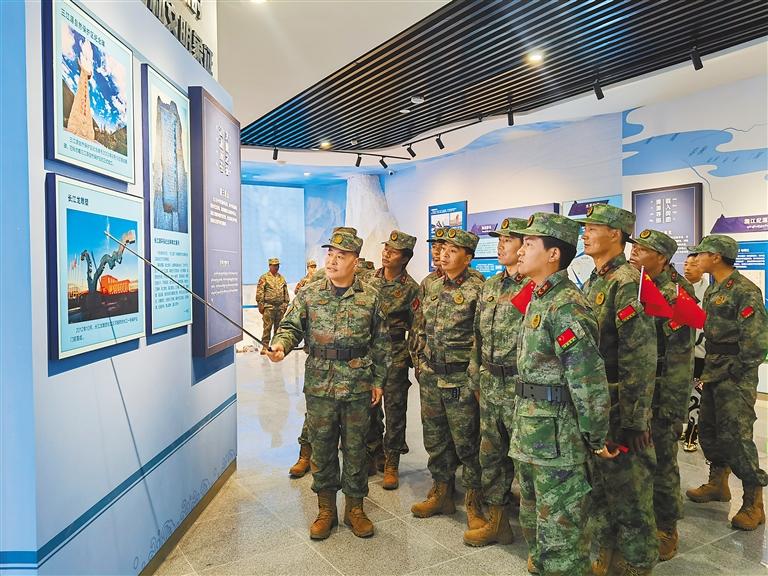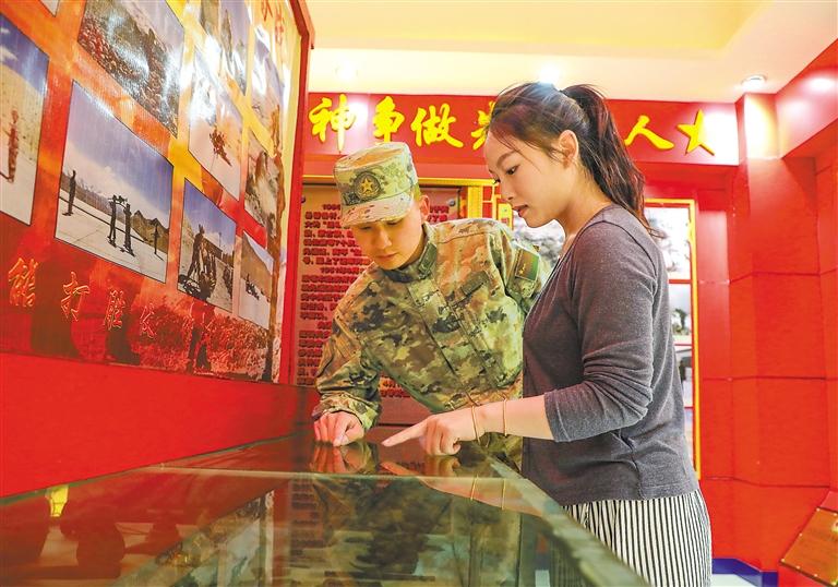圖為7月31日,駐藏某部開展“軍屬進(jìn)軍營、共慶八一建軍節(jié)”主題活動(dòng),邀請(qǐng)官兵家屬走進(jìn)軍營,了解官兵日常工作和生活情況,不斷增進(jìn)廣大軍屬的認(rèn)同感與自豪感。這是官兵家屬在參觀部隊(duì)榮譽(yù)室。記者 次仁平措 通訊員 劉曉東 攝