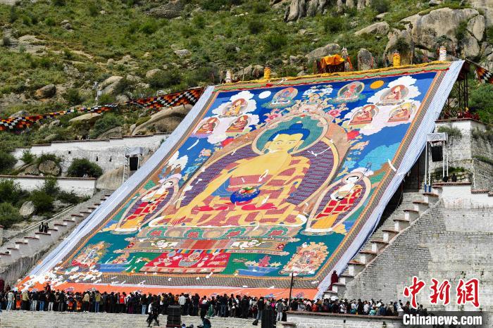 4日是藏歷六月三十日,一年一度的西藏拉薩雪頓節(jié)拉開帷幕?!把睘樗崮?,“頓”意為宴,所以雪頓節(jié)也被稱為“酸奶節(jié)”,已有三百多年歷史。每年的這一天,拉薩哲蚌寺都會(huì)舉行盛大的展佛活動(dòng),這是拉薩雪頓節(jié)最為重要的傳統(tǒng)活動(dòng)之一,吸引著成千上萬的朝佛信眾和游客。