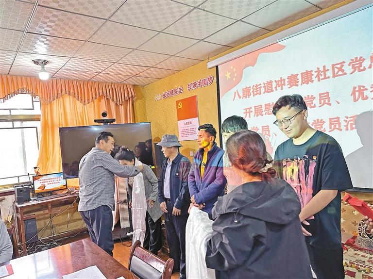 拉薩市沖賽康社區(qū)黨總支看望慰問社區(qū)退休老黨員和困難黨員,并送去慰問金。記者 央金 攝