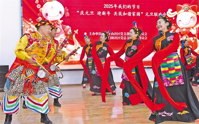 歡聲笑語(yǔ)辭舊歲,喜氣洋洋迎新年。為營(yíng)造歡樂(lè)祥和的節(jié)日氛圍,豐富社區(qū)居民文化生活,增強(qiáng)社區(qū)凝聚力,促進(jìn)鄰里和諧。近日,由拉薩市城關(guān)區(qū)策門(mén)林社區(qū)、藥王山社區(qū)主辦的2025年我們的節(jié)日“慶元旦 迎新年 共筑和諧家園”元旦聯(lián)歡會(huì)舉行?;顒?dòng)現(xiàn)場(chǎng),大家載歌載舞歡慶新年的到來(lái)。