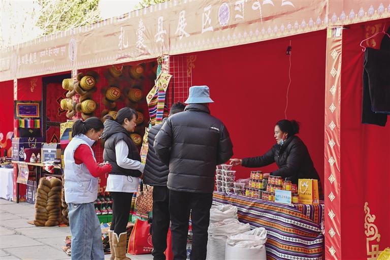活動(dòng)現(xiàn)場(chǎng),擺滿了各式各樣的山南特色農(nóng)產(chǎn)品,青稞產(chǎn)品、葡萄酒、牛羊肉、民族服飾、手工藝品等應(yīng)有盡有,令人目不暇接,吸引眾多市民停下腳步精心挑選。這些產(chǎn)品既充滿濃郁的地方特色,又是年前備受歡迎的暢銷好物。此次活動(dòng)共有來(lái)自山南的27家商戶參展,帶來(lái)了100余種優(yōu)質(zhì)產(chǎn)品。市民們?cè)诟鱾€(gè)展位之間穿梭,精心挑選著心儀的年貨,每個(gè)人臉上都洋溢著幸福的笑容。