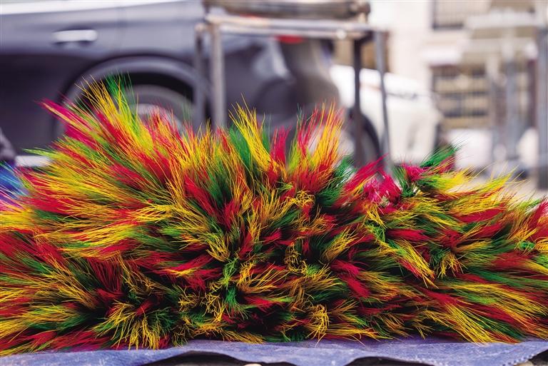 “銷(xiāo)量好的時(shí)候一天可以賣(mài)近1000元,一般的時(shí)候也有500元左右?!毖虢鹱屑?xì)檢查著剛?cè)竞蒙摹傲_薩梅朵”,她的手和臉因長(zhǎng)時(shí)間接觸顏料而沾滿色彩?!耙郧啊_薩梅朵’的顏色并不多,只有玫紅色,上色不均勻也沒(méi)人會(huì)說(shuō)什么。但現(xiàn)在,顏色必須亮麗、均勻,這也體現(xiàn)了大家生活越來(lái)越好,生活品質(zhì)越來(lái)越高?!毖虢鹦χf(shuō)。