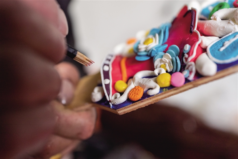 當記者聊起如今市面上也有機器雕刻的酥油花時,師傅羅布次仁停下手中的活,說道:“酥油花是千年傳承下來的瑰寶,講究一年換一新,同樣也講究人們制作時注入的美好愿望和祝福。早在2013年,它就被列入西藏自治區(qū)級非物質(zhì)文化遺產(chǎn)名錄。如今雖然出現(xiàn)了機器雕刻的酥油花,但它們?nèi)绷舜鄠鞯牧α?,機械復(fù)制不了指尖傳遞的溫度。我們要傳承好這門技藝。”