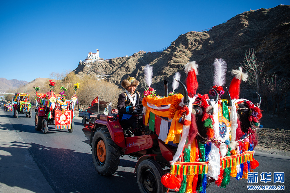 3月16日,西藏山南市乃東區(qū)門中崗社區(qū)的群眾正前往春耕儀式現(xiàn)場。新華網(wǎng) 旦增努布 攝