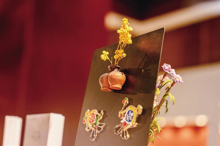 踏入文創(chuàng)展示區(qū),猶如穿越歷史長(zhǎng)廊?!段某晒饔H圖》刺繡系列重現(xiàn)漢藏和親盛景,華美紋飾在紗幔上靈動(dòng)舒展;鎮(zhèn)館之寶朱墨彩繪雙體陶罐化身實(shí)用藝術(shù)品,原始陶紋與插花功能巧妙結(jié)合,成為游客競(jìng)相收藏的“微型博物館”。