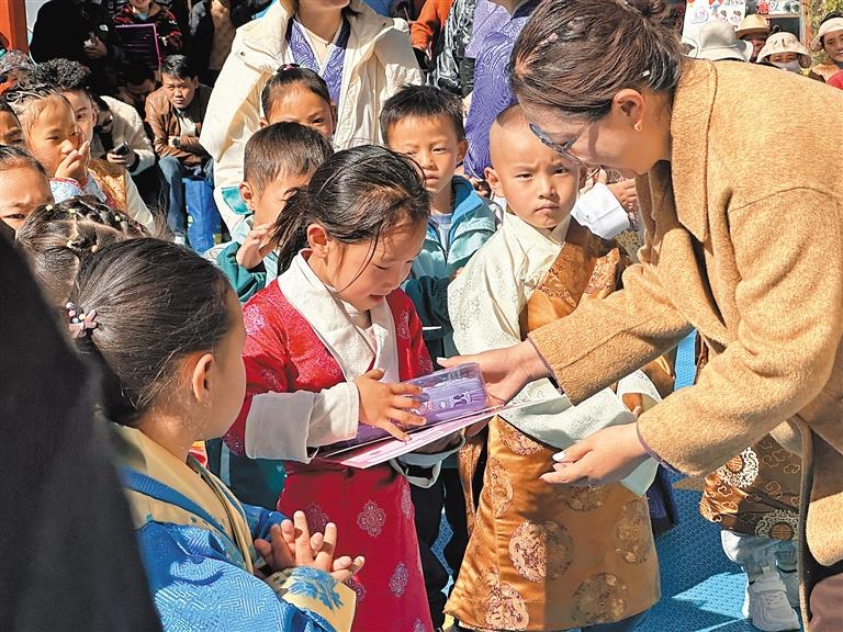 圖為工作人員為答對問題的小朋友頒發(fā)獎(jiǎng)品。記者 拉巴桑姆 攝
