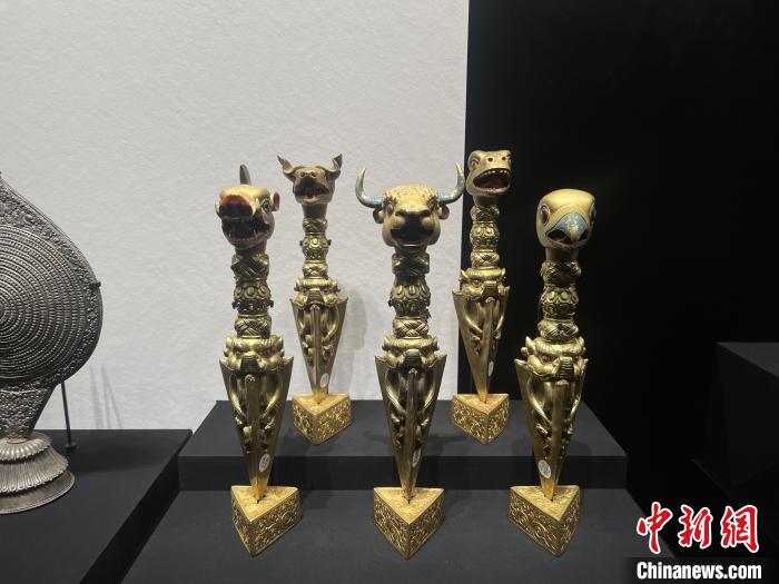 圖為展出的鐵質鎏金獸首金剛橛。記者 岳依桐 攝