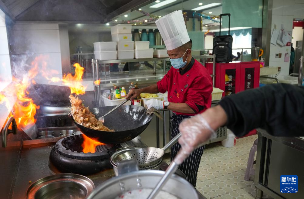 4月25日,那曲市色尼區(qū)老年人日間照料中心的廚師在制作午餐。新華社記者 晉美多吉 攝