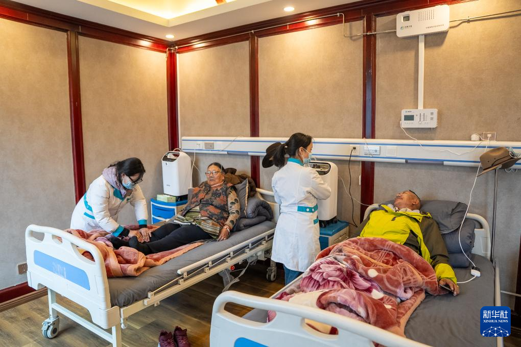 4月25日,老人們在那曲市色尼區(qū)老年人日間照料中心做理療。新華社記者 丁增尼達(dá) 攝