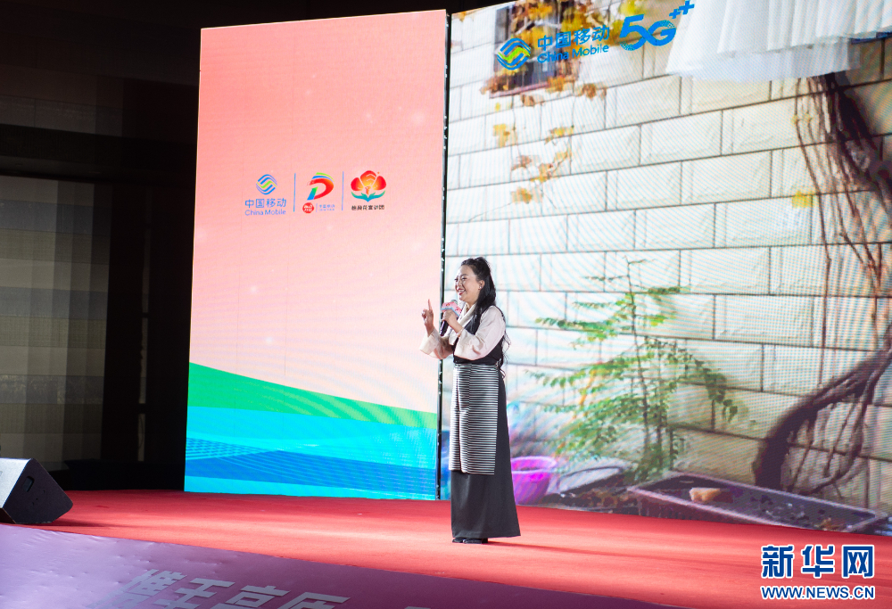 4月25日,中國(guó)移動(dòng)西藏公司宣講員卓嘎拉姆在講述《踐行以人民為中心理念,共筑西藏移動(dòng)發(fā)展新篇章》。新華網(wǎng) 旦增努布 攝