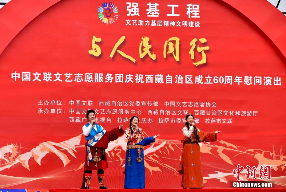5月25日,由中國文聯(lián)、西藏自治區(qū)黨委宣傳部、中國文藝志愿者協(xié)會(huì)主辦的“與人民同行”中國文聯(lián)文藝志愿服務(wù)團(tuán)慶祝西藏自治區(qū)成立60周年慰問演出在位于拉薩的西藏會(huì)展中心廣場(chǎng)舉行。藝術(shù)家們?yōu)楝F(xiàn)場(chǎng)觀眾帶來歌曲、舞蹈、相聲、朗誦等節(jié)目,把優(yōu)質(zhì)文化服務(wù)送到基層一線。圖為歌曲《珠穆朗瑪》演出現(xiàn)場(chǎng)。