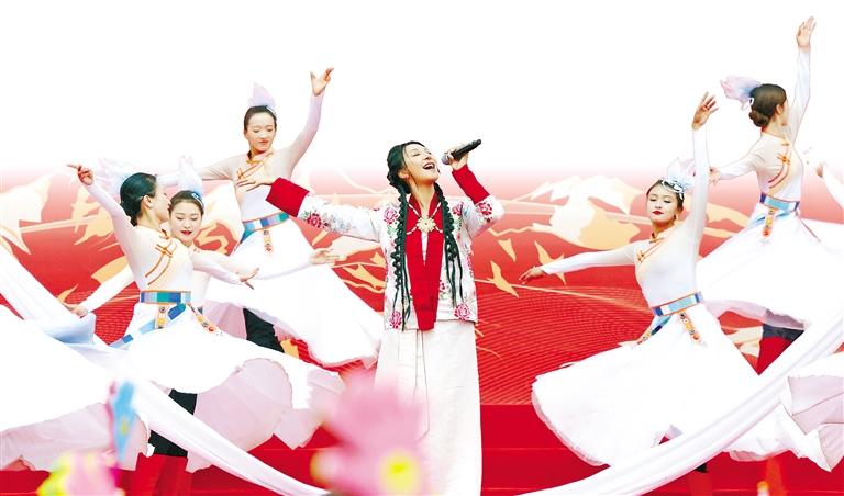演出中,不同民族的文藝志愿者齊聚一堂。漢族、藏族、蒙古族、彝族等各民族藝術(shù)家攜手合作,用藝術(shù)搭建起溝通的橋梁。他們用歌聲、舞蹈、相聲、朗誦等多種藝術(shù)形式,深情歌頌新時(shí)代黨的治藏方略,生動(dòng)展現(xiàn)西藏自治區(qū)成立60年來的滄桑巨變,傳遞民族團(tuán)結(jié)的深厚情誼,讓現(xiàn)場(chǎng)觀眾沉浸在藝術(shù)的氛圍中。