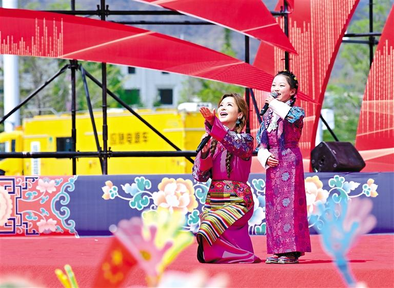 歌手平安與西藏珠峰少年合唱團(tuán)帶來歌曲《我愛你中國》。(其余圖片均由記者 唐斌 白瑪澤旺 王敏 丹增群培 旦增蘭澤 攝)