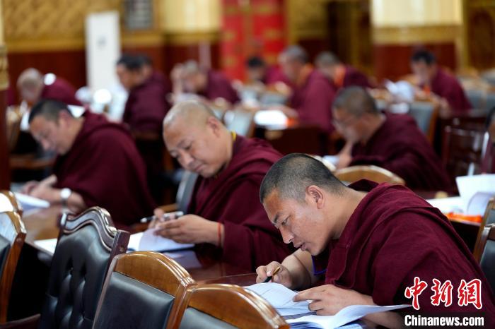 圖為5月30日,中國(guó)藏語系高級(jí)佛學(xué)院2025級(jí)高級(jí)學(xué)銜班招生考試在西藏拉薩考點(diǎn)舉行通識(shí)知識(shí)考試。中新社記者 李林 攝
