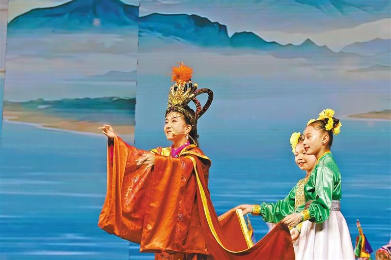 舞臺中央,12歲的其美卓嘎身著錦繡華服,以清亮唱腔和靈動演繹,將文成公主的溫婉堅毅展現(xiàn)得淋漓盡致?!爱?dāng)我穿上戲服、唱起‘漢藏情誼潔如璧’時,仿佛真的穿越到千年前的和親之路?!毖莩鼋Y(jié)束后,小姑娘眼中閃爍著興奮的光芒,“原來民族團結(jié)的故事,就藏在這些古老而動人的戲文里?!逼涓赣H倫珠難掩自豪:“文成公主促進了漢藏交融,女兒能表演這個節(jié)目,用藏戲詮釋民族團結(jié),是我們?nèi)业尿湴?!?/p>