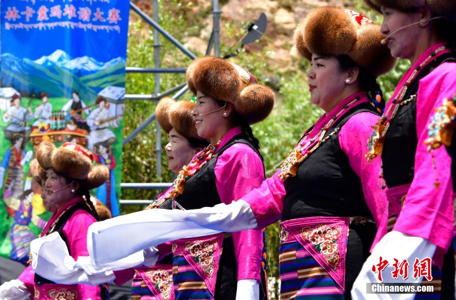 6月28日,拉薩首屆林卡囊瑪堆諧大賽在達(dá)孜區(qū)舉辦。現(xiàn)場(chǎng),經(jīng)過前期海選入圍的19支隊(duì)伍依次上臺(tái)競(jìng)技。囊瑪和堆諧,合稱囊瑪堆諧,是西藏民間歌舞發(fā)展到較高層次、集歌舞樂為一體的珍貴傳統(tǒng)文化藝術(shù)遺產(chǎn),深受當(dāng)?shù)孛癖姷南矏叟c追捧。圖為首屆林卡囊瑪堆諧大賽比賽現(xiàn)場(chǎng)。