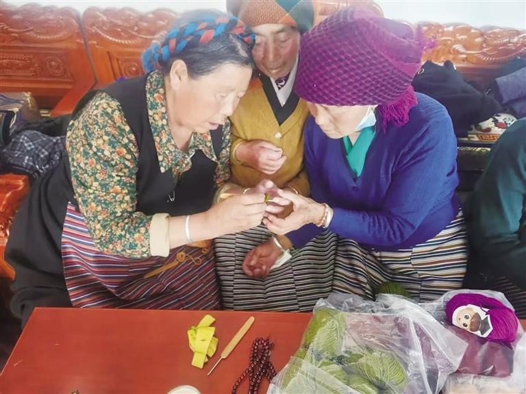 圖由拉薩市民政局提供 幸福院的老人正在進行針織技藝交流。