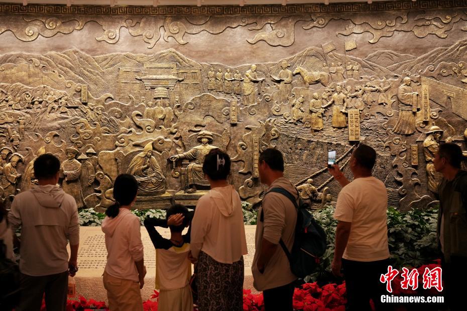 7月15日,在位于西藏拉薩的西藏博物館,觀眾參觀西藏歷史畫卷浮雕。據了解,西藏博物館設有基本陳列《雪域長歌—西藏歷史文化展》《離太陽最近的人—西藏民俗文化展》,充分展示西藏地區(qū)歷史發(fā)展進程與文化面貌。