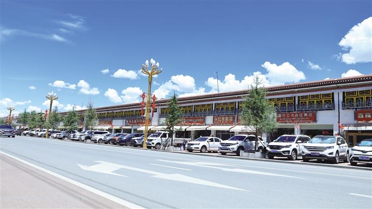值得關(guān)注的是,此次修復(fù)及新建的商鋪外立面特意采用傳統(tǒng)藏式繪畫(huà)工藝,選用新藏式風(fēng)格,旨在弘揚(yáng)獨(dú)特的當(dāng)?shù)匚幕?,使其在現(xiàn)代城市中展現(xiàn)新活力。通過(guò)外立面裝飾改造形成統(tǒng)一風(fēng)格后,老舊街區(qū)的藏式特色更加凸顯。