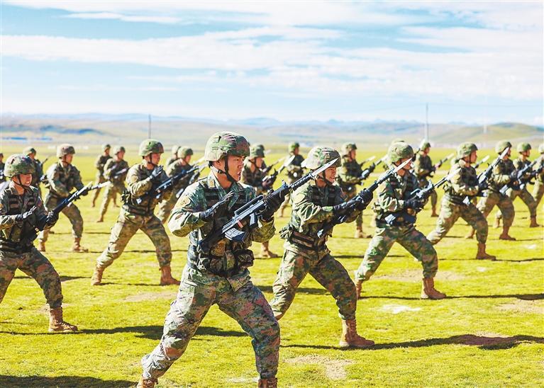 那曲市2025年度“軍事日”活動(dòng)日前在那曲軍分區(qū)某訓(xùn)練場(chǎng)舉行。這是官兵們?cè)谶M(jìn)行軍事科目演示。記者 萬靖 攝
