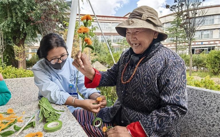 此外,為提升老人們的幸福感,每逢重大節(jié)日,拉薩市社會(huì)福利院都會(huì)舉辦豐富多彩的文藝演出?!懊磕晡覀兣e辦大大小小的活動(dòng)不少于200次,前幾天我們就在宗角祿康公園舉辦‘紅歌嘹亮頌黨恩,銀齡歌舞展風(fēng)采’活動(dòng),老人們通過(guò)紅歌聯(lián)唱、手工展示等形式,展現(xiàn)了他們積極向上的精神風(fēng)貌。”扎西頓珠表示,拉薩市社會(huì)福利院通過(guò)整合資源、創(chuàng)新服務(wù),開(kāi)展的各類文化活動(dòng)有效豐富了老年人的精神文化生活,滿足了老年人對(duì)養(yǎng)老院生活品質(zhì)的需求。