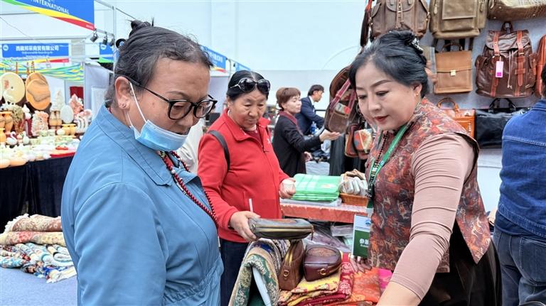 展會現(xiàn)場人頭攢動,熱鬧非凡。150家參展商帶來的特色產(chǎn)品鋪滿了各個展位,空氣中彌漫著多元?dú)庀ⅰ7▏t酒的醇厚酒香、印度尼西亞咖啡的濃郁焦香、伊朗藏紅花的獨(dú)特芬芳交織在一起,與西藏本土青稞制品的麥香、高原蜂蜜的甜香相互映襯。在巴基斯坦展位前,參展商Asif正熱情地向顧客展示手工羊毛地毯,“我已經(jīng)連續(xù)三年參加,之前銷量都很好,這次帶來的地毯紋樣融入了藏式元素,希望能更受歡迎?!?/p>