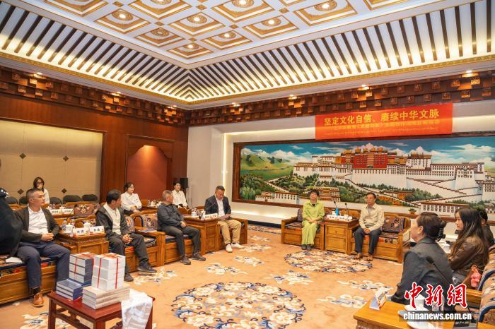 圖為8月27日,中國華夏文化遺產(chǎn)基金會(huì)向西藏博物館捐贈(zèng)《文成公主》連環(huán)畫等作品現(xiàn)場。(主辦方供圖)