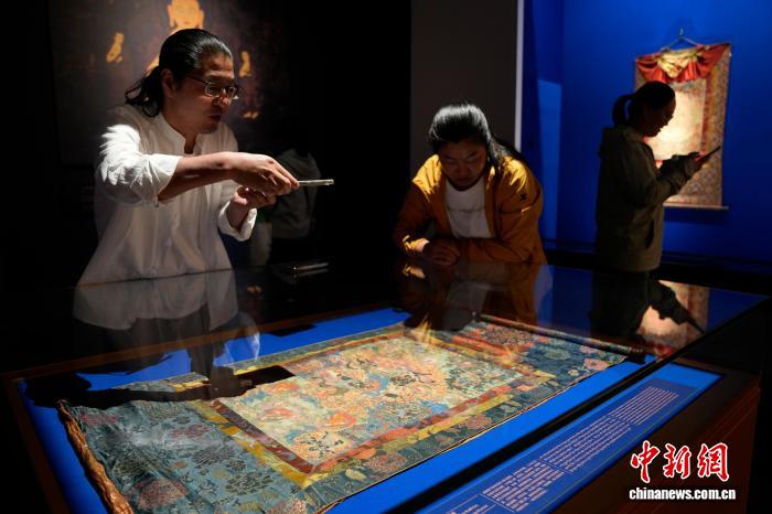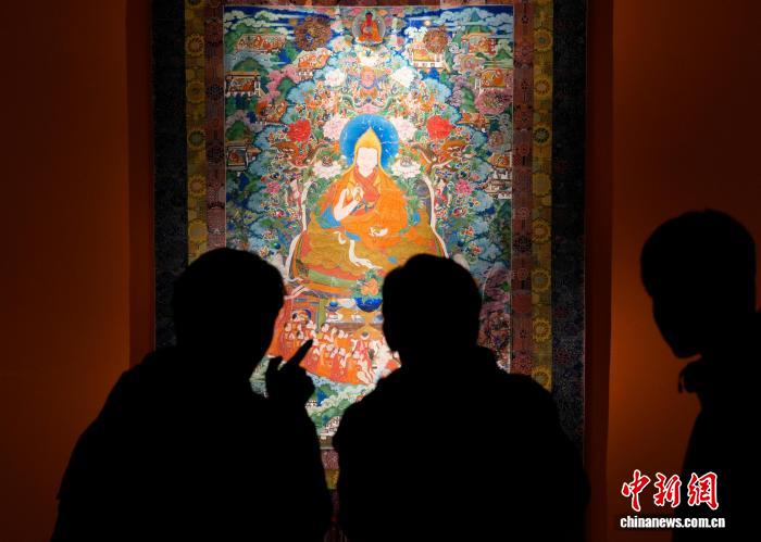 圖為觀眾欣賞展覽中的唐卡。李林 攝