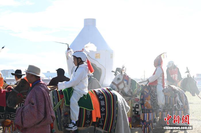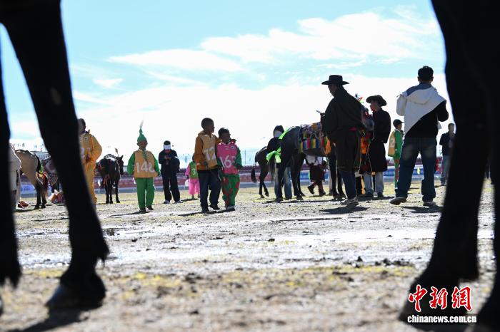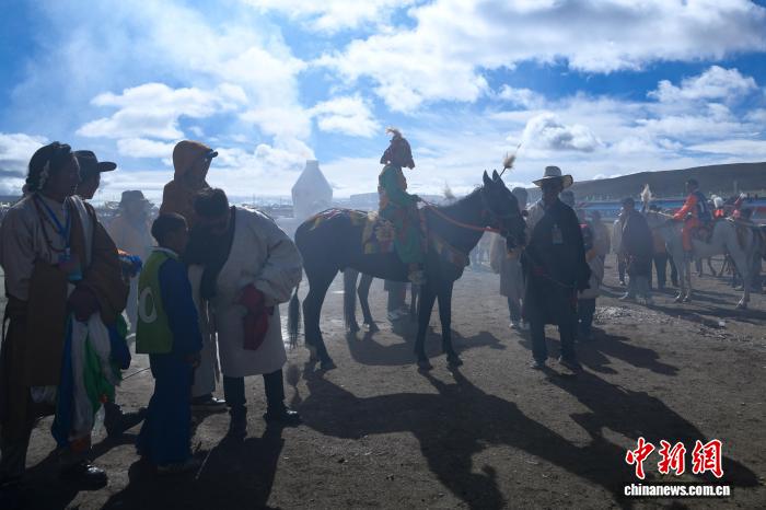 圖為參賽選手準(zhǔn)備參加恰青賽馬節(jié)傳統(tǒng)大跑決賽。中新社記者 貢嘎來(lái)松 攝
