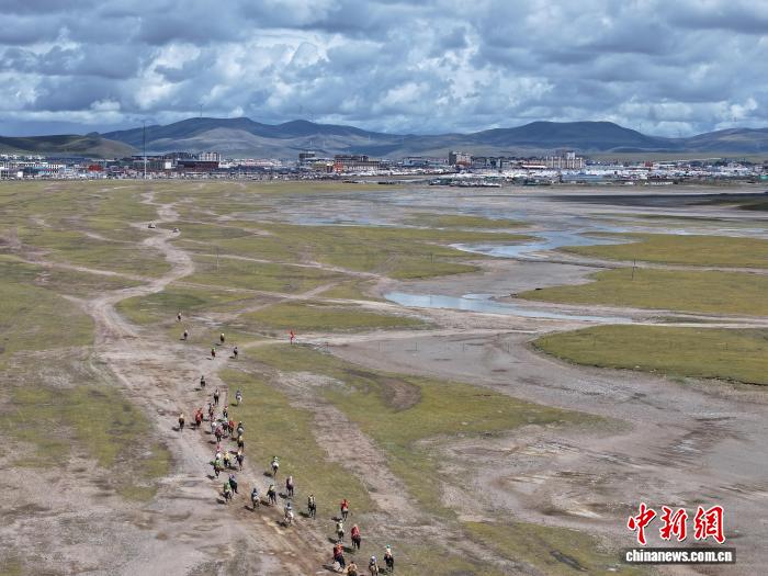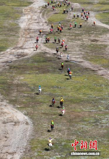 圖為恰青賽馬節(jié)傳統(tǒng)大跑決賽現(xiàn)場(chǎng)(無(wú)人機(jī)照片)。中新社記者 貢嘎來(lái)松 攝