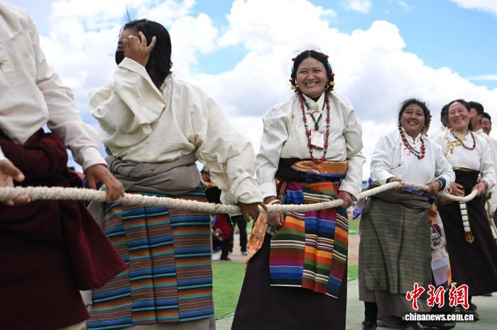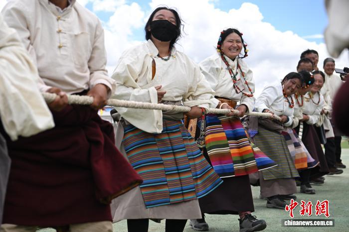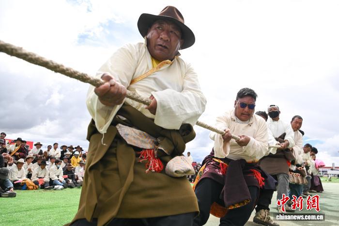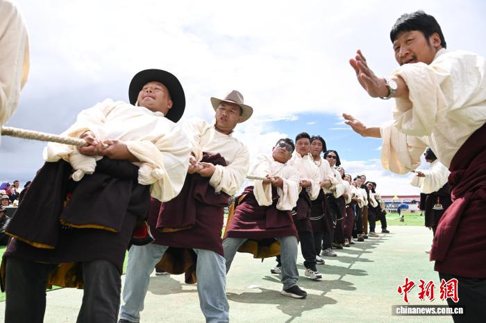 9月6日,西藏自治區(qū)那曲市恰青賽馬節(jié)的精彩賽事持續(xù)進行,男女混合拔河比賽現(xiàn)場氣氛熱烈。來自那曲各縣的參賽隊伍齊聚賽場,隊員們協(xié)同發(fā)力、奮勇拼搏。這一賽事不僅展現(xiàn)了那曲兒女的力量與默契,更傳遞出團結(jié)協(xié)作的精神,為賽馬節(jié)增添了別樣活力。圖為那曲恰青賽馬節(jié)拔河比賽現(xiàn)場。中新社記者 貢嘎來松 攝