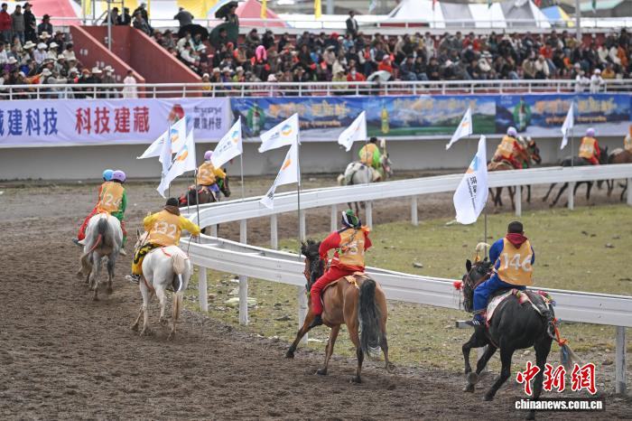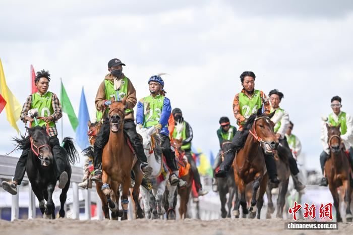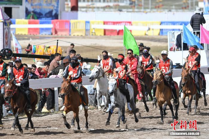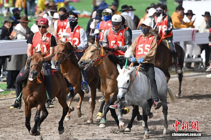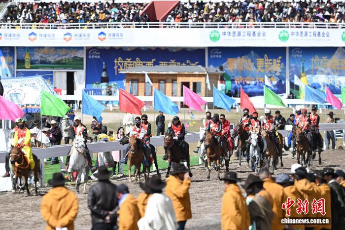 9月6日,西藏自治區(qū)那曲市恰青賽馬節(jié)進入第二天,格薩爾賽馬場賽事精彩不斷。場內,1.38米以下小馬展開10000米速跑、10000米走馬、12000米走馬決賽,1.38米以上1.45米以下大馬角逐10000米速跑決賽。為觀眾帶來速度與耐力的草原盛宴,盡顯藏北草原賽馬文化的獨特魅力。圖為1.38米以上1.45米以下大馬速度賽比賽現場。中新社記者 貢嘎來松 攝