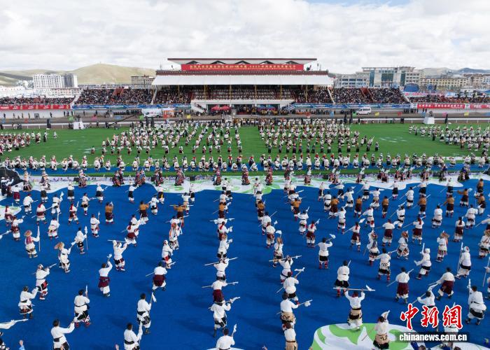 圖為那曲恰青賽馬節(jié)開(kāi)幕式上的文藝演出。貢嘎來(lái)松 攝