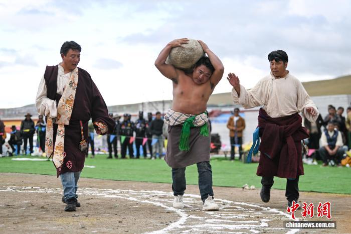 圖為那曲恰青賽馬節(jié)抱石頭比賽現(xiàn)場(chǎng)。貢嘎來(lái)松 攝
