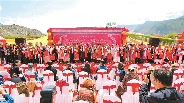 今年是西藏自治區(qū)成立60周年和堆龍德慶區(qū)撤縣設區(qū)10周年。近日,拉薩市堆龍德慶區(qū)舉辦“六秩雪域見證愛·十載堆龍情定緣”集體婚禮盛典活動。60位新人在眾人的見證下完成了婚禮,共同開啟幸福生活篇章。