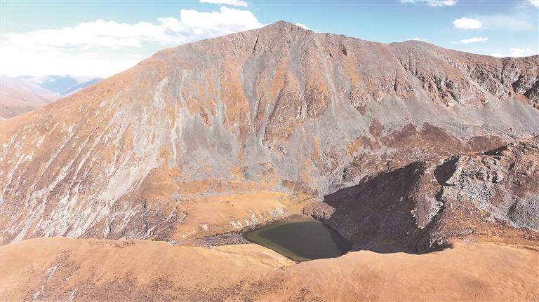 此次發(fā)現(xiàn)的湖泊藏于墨竹工卡縣扎雪鄉(xiāng)其朗村西瑪組溝內(nèi)的群山中,海拔高達(dá)5000米以上,當(dāng)?shù)厝罕姺Q之為“次熱措”。湖泊面積雖不大,卻如一顆隱匿的寶石,靜靜鑲嵌在群山之間,長(zhǎng)久守護(hù)著周邊山林,盡顯靜謐。