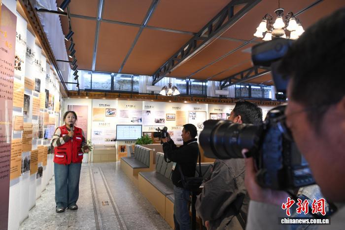 圖為媒體和網(wǎng)絡(luò)名人參觀(guān)八一社區(qū)家史館。貢嘎來(lái)松 攝